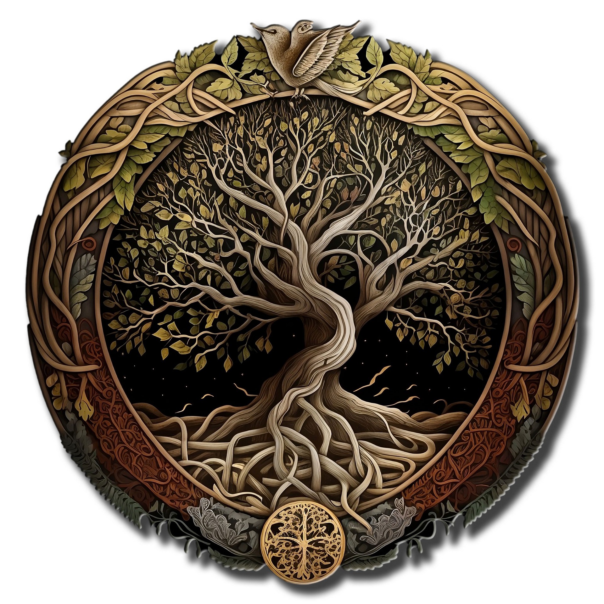 Yggdrasil is the name of the majestic tree that connects the nine worlds in Norse mythology. It is also known as the World Tree or the Cosmic Tree. Yggdrasil is a symbol of the interconnectedness of all things, from the gods and giants to the humans and animals. Yggdrasil is said to have three roots, each reaching to a different realm: Asgard, the home of the gods; Jotunheim, the land of the giants; and Niflheim, the realm of ice and mist. Yggdrasil is also home to various creatures, such as the eagle Hraesvelgr, the dragon Nidhogg, and the squirrel Ratatoskr.